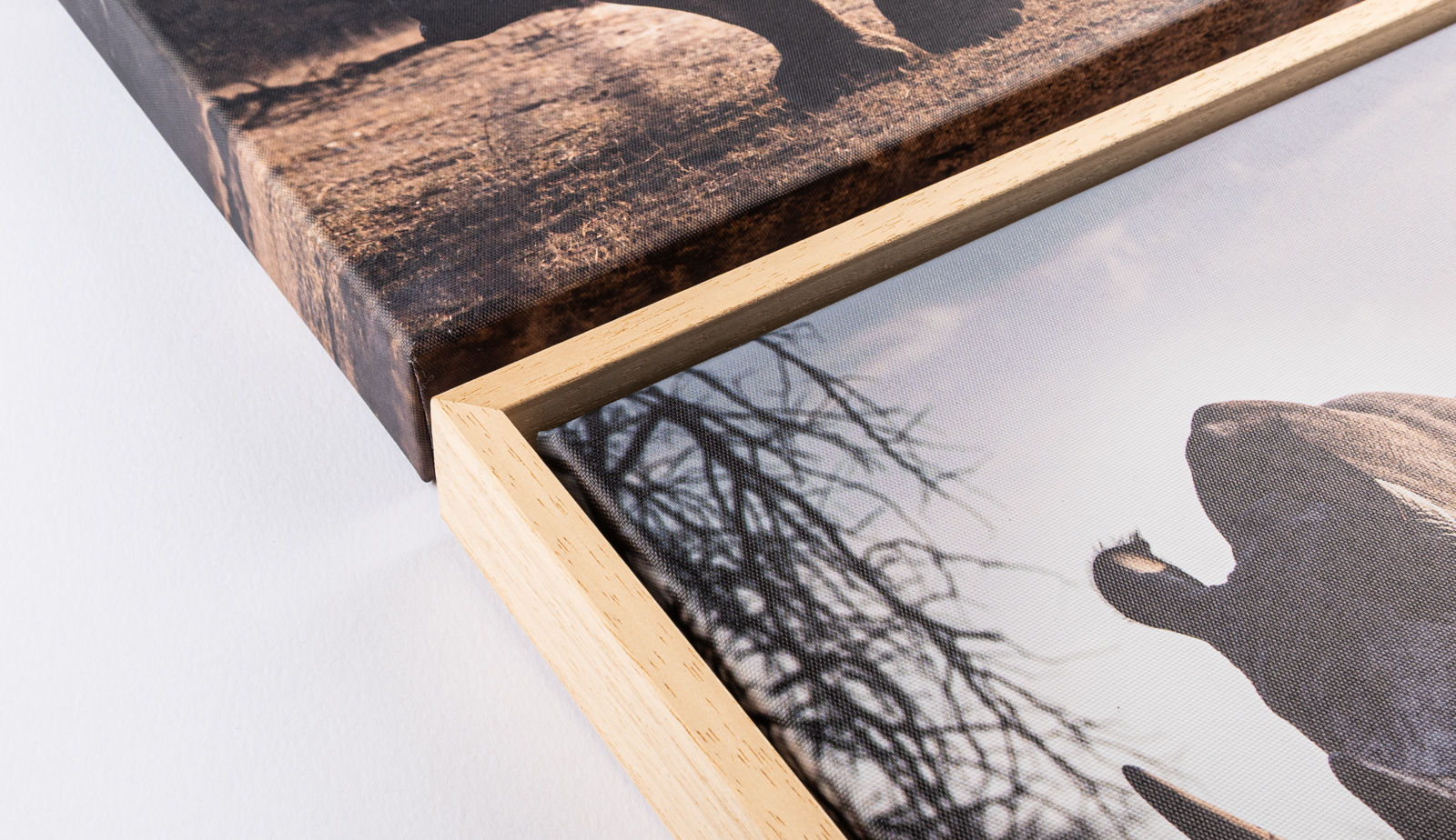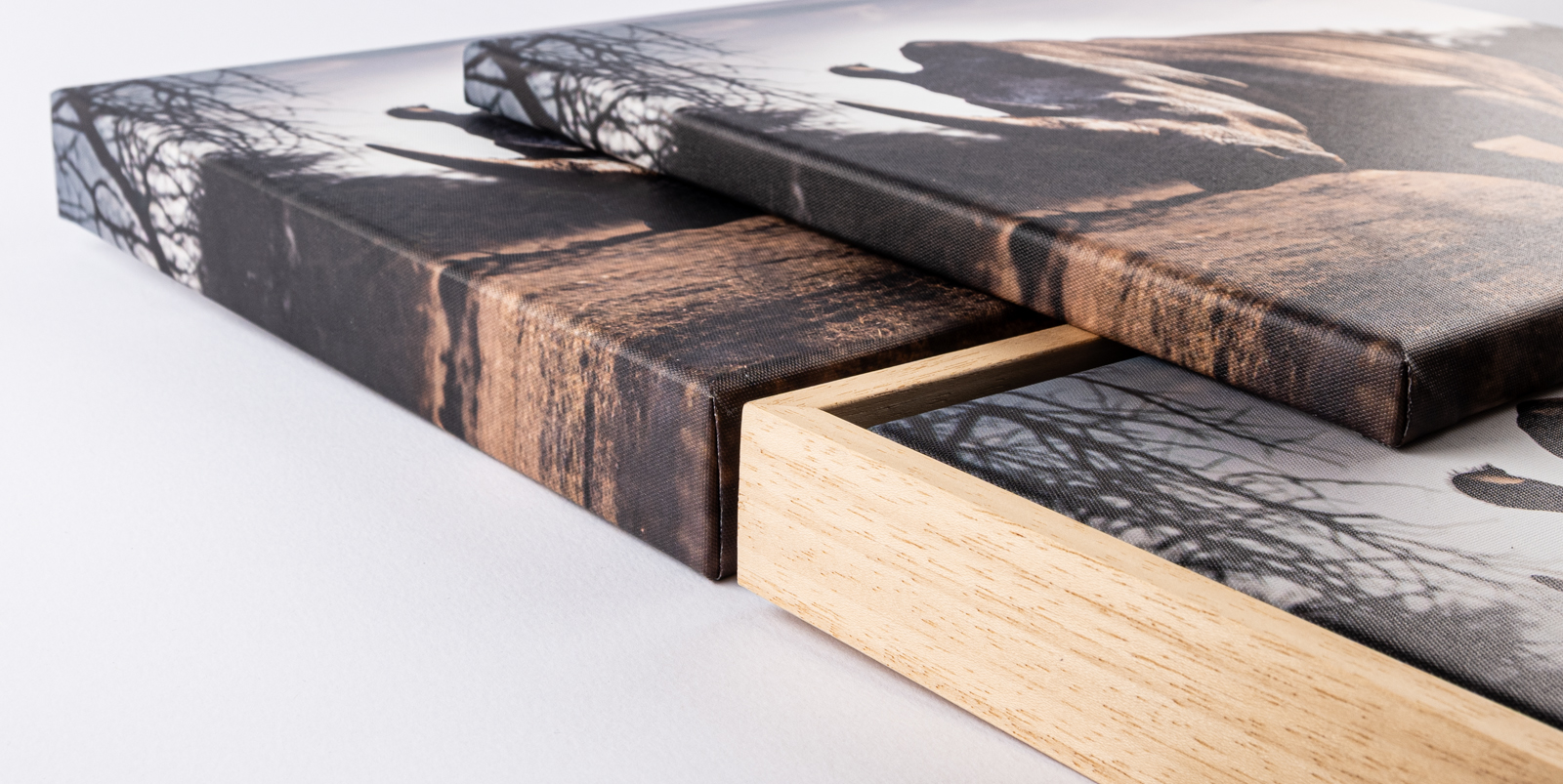 přírodní vzhled dřeva • hloubka/výška rámu 4 cm • mezi obrazem a obvodovým rámem je ponechaná mezera přbližně 5 mm