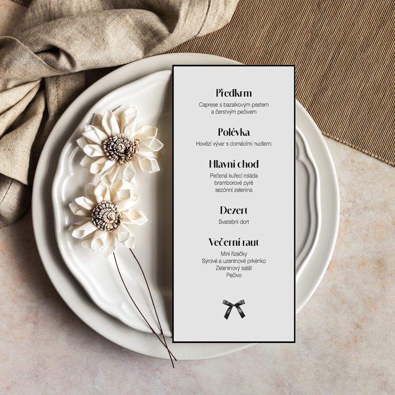 Každý host je zvědavý, co se bude podávat. A každá nevěsta ví, že svatební menu není jen praktická kartička – je to další způsob, jak vyprávět příběh vašeho dne. Oslovte hosty krásně vysázeným seznamem dobrot, který ladí se vším ostatním na stole. U nás si vyberete – ať už chcete menu decentní, výpravné, nebo třeba na pevné desce.